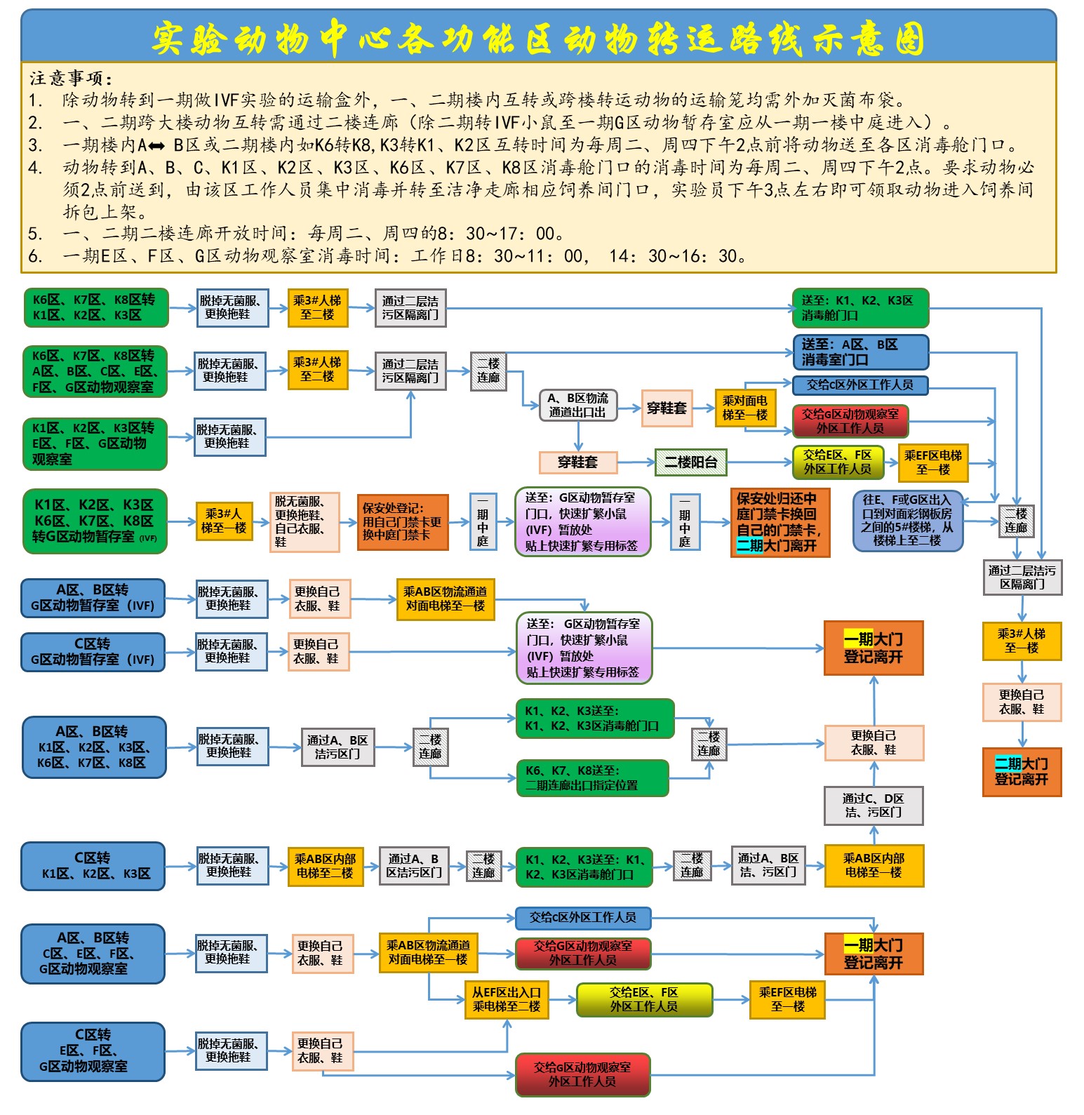 校内课题组必须严格执行实验动物中心有关繁殖区和实验区的小鼠转移流程,经办人必须全程参与转移过程。